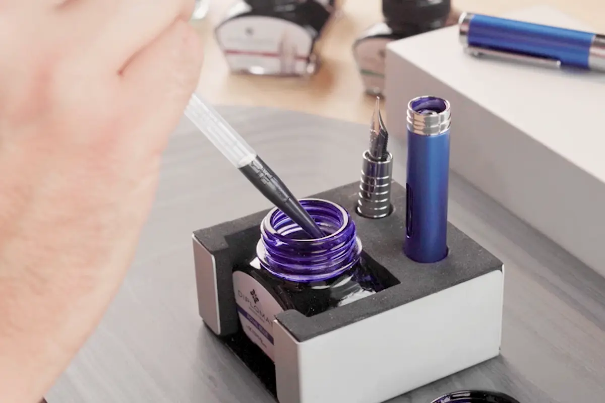 Unter Verwendung eines Kolbensystems, welches Sie mit einer Pipette befüllen, haben wir für den Nexus ein Verschlusssystem entwickelt, das eine dichte Trennung zwischen Behälter und Federaggregat gewährleistet. Mit diesem System sorgt das Schließen des Füllhalters, im Zuge des Verschließens mit der Kappe, für einen perfekten Auslaufschutz, auch im Flugzeug. Besonders hervorzuheben ist auch die hohe Kapazität des Tintenvorrates, welcher mehr als 7 Tintenpatronen entspricht. Für ein tolles Erlebnis wurde ein spezielles Aufbewahrungsetui mit einem leicht zu handhabenden Befüll-Set entwickelt.