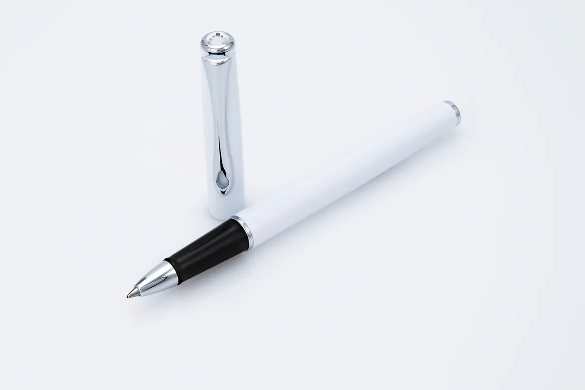 Rollerball with black writing refill. Warranty card. Magnetic opening case included.