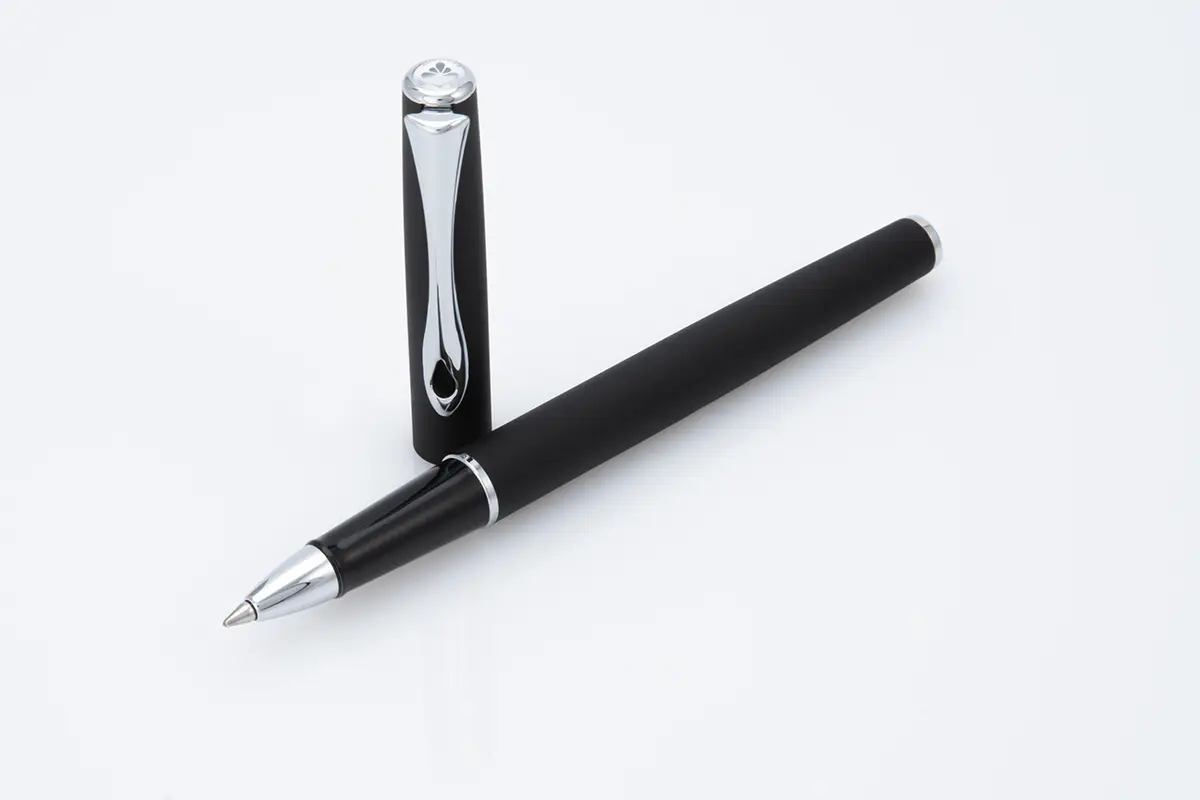 Rollerball with black writing refill. Warranty card. Magnetic opening case included.
