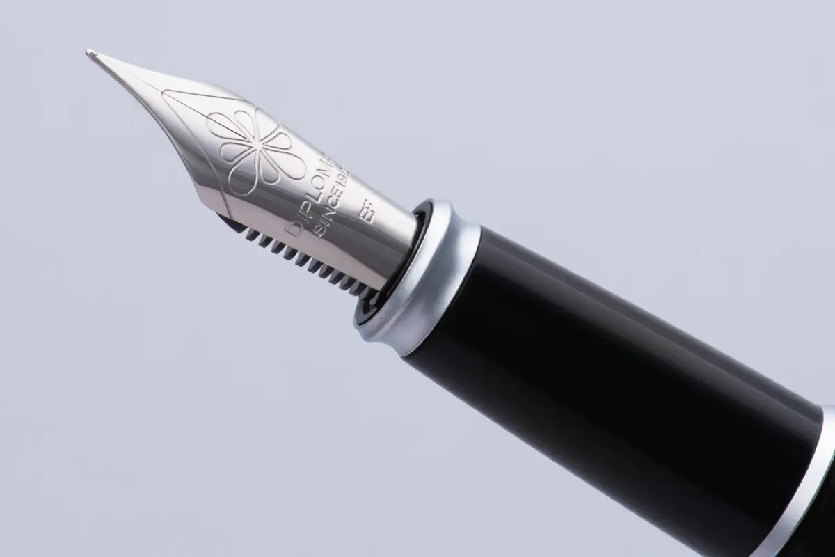 Stylo plume avec plume acier inoxydable et convecteur d’encre inséré, ainsi que 2 cartouches internationales courtes. Carte de garantie. Coffret inclus.