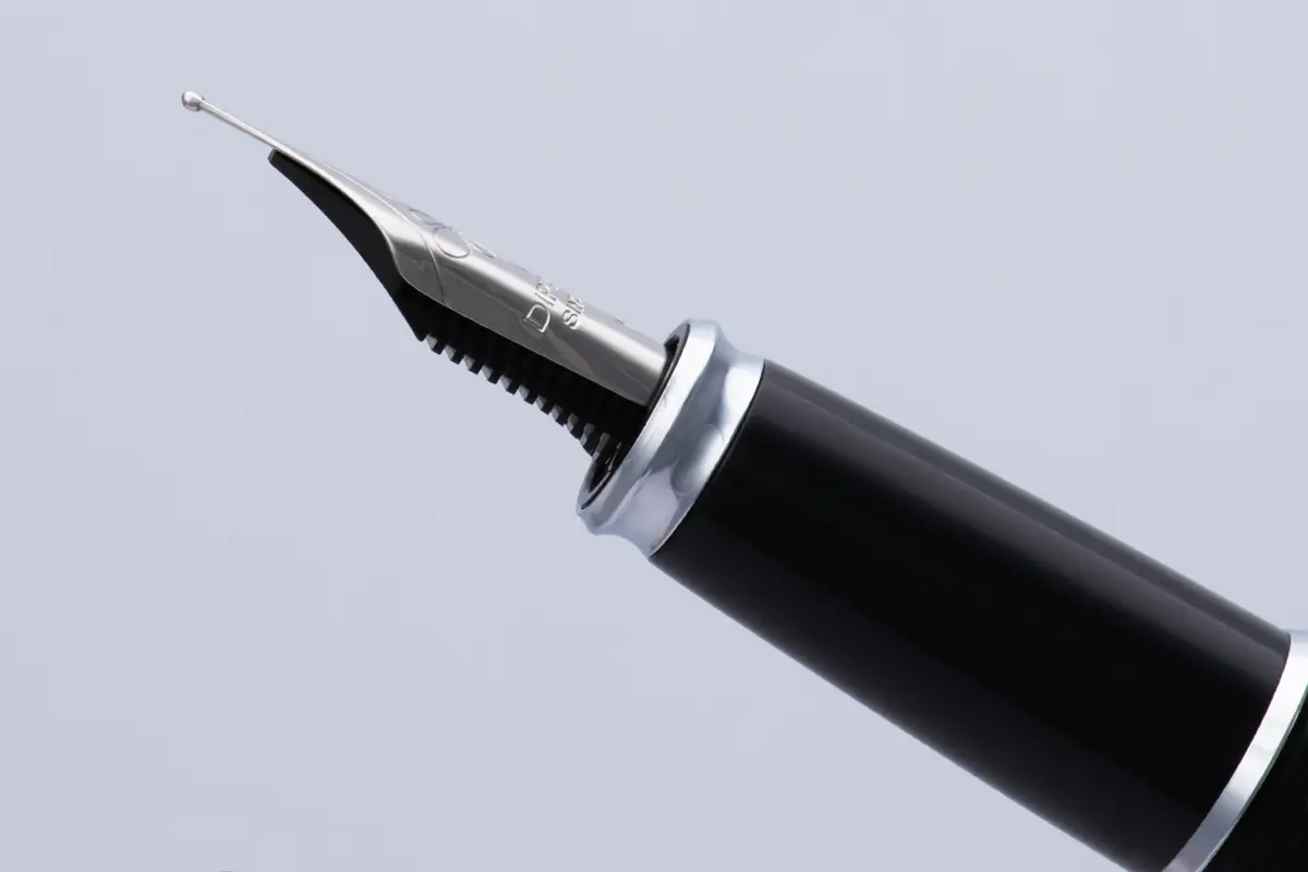 Stylo plume avec plume acier inoxydable et convecteur d’encre inséré, ainsi que 2 cartouches internationales courtes. Carte de garantie. Coffret inclus.